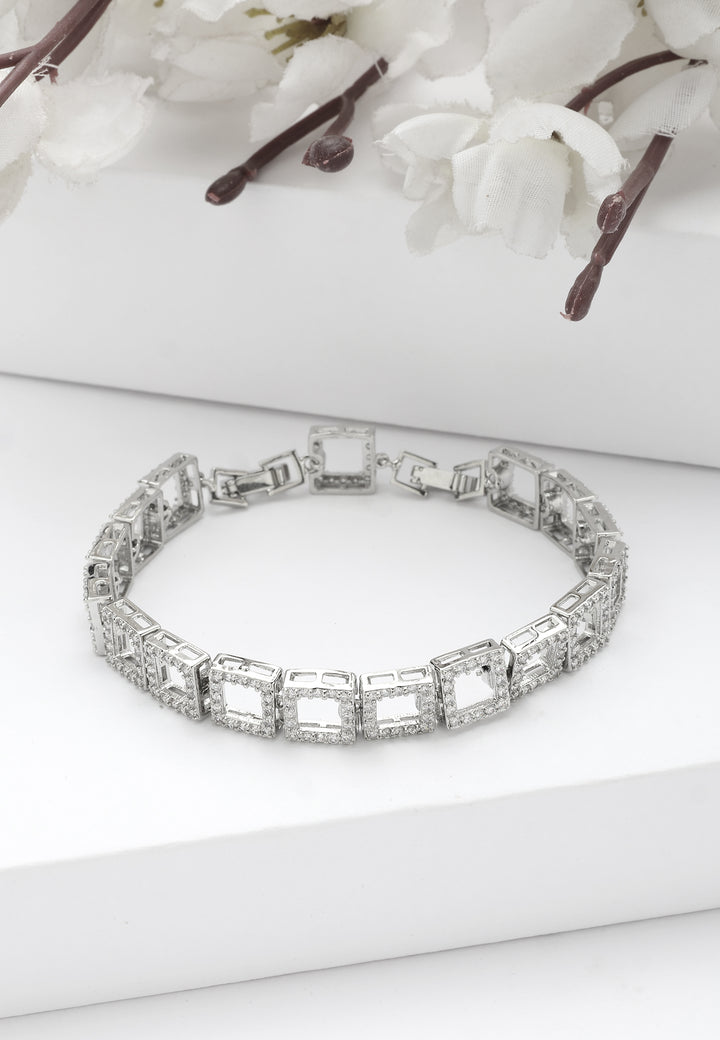 Tá an Bracelet Slabhra Cearnógach Hollow Diva i airgead ó chnuasach Diva, a bhfuil zirconia cúpóideach ann, ag comhoibriú dearadh sleek le sparkle luxurious. Tá an bracelet seo ar a shon ag a naisc slabhra cearnógacha, a thugann cuma nua-aimseartha agus geoiméadrach dó. Cuireann dath an airgid ar an bracelet le solúbthacht, ag ligean dó comhoiriúnú le héadaí agus stíleanna éagsúla. Cibé an bhfuil sé á chaitheamh mar phíosa aonair le haghaidh cuma minimalist nó á phéireáil le jewelry eile le haghaidh éifeacht stráice, tá an Bracelet Slabhra Cearnógach Hollow Diva i airgead foirfe do dhaoine a luann dearadh comhoiriúnach.