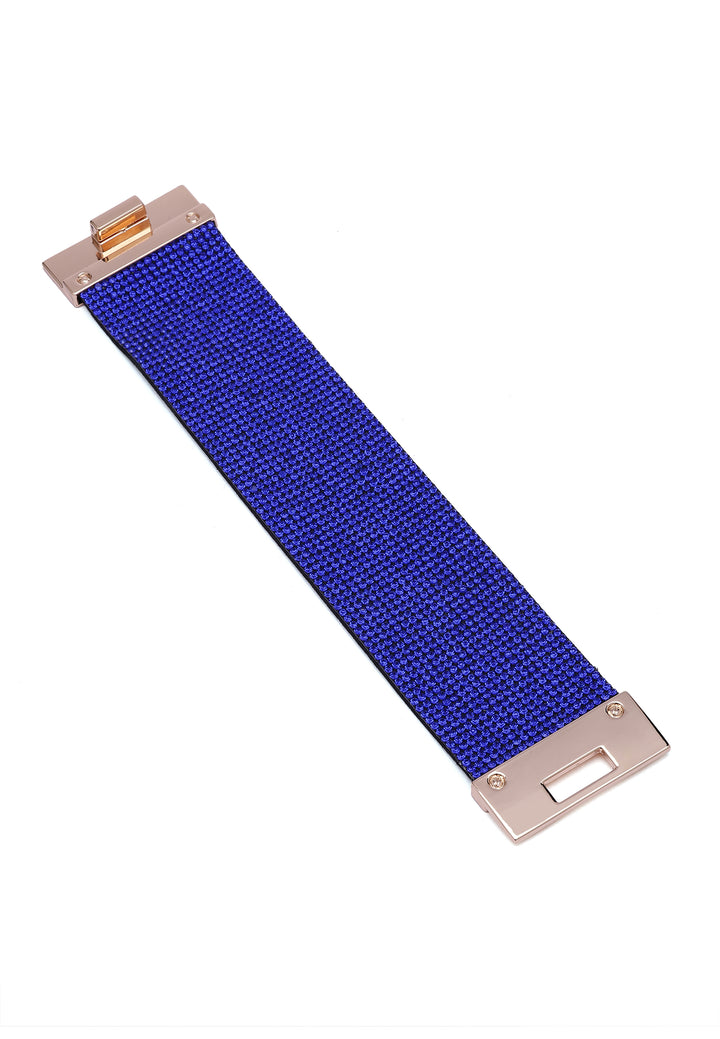 Wrap your wrist in pure diva energy. This wide leather cuff is drenched in blue crystals, creating a royal blue shimmer that feels straight off the red carpet. Lined with soft suede and finished with a sleek, high-polish clasp, it’s a bold, luxurious statement piece for nights when you want all eyes on you.