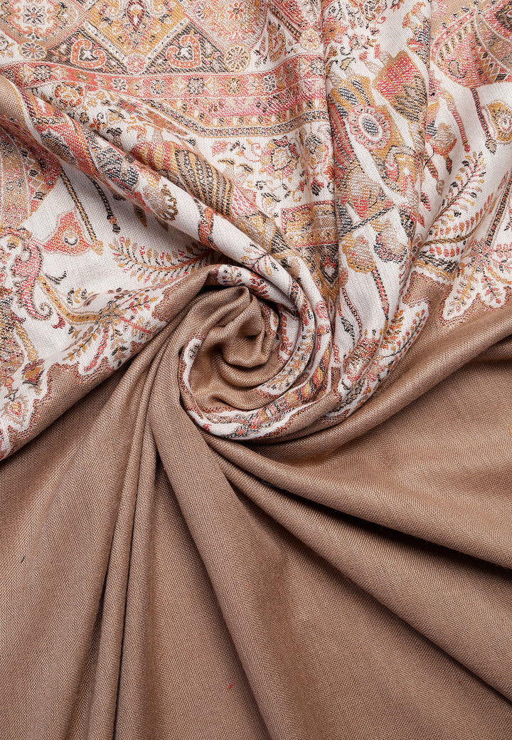 Piękne wzory Jamawar, na miękkim sztucznym pashminie i tradycyjnych dziełach sztuki. Popularne od czasów Mogołów. Ten tradycyjny szal kaszmirski ma skomplikowany wzór i wysoką jakość.